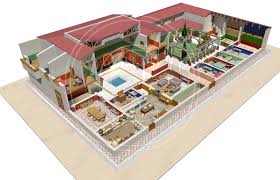 ·Domus: vivienda independiente a la que solo accedía la clase más adinerada. Su planta era rectangular, y todas las estancias se concentraban en torno al atrium, un patio central a cielo abierto, que recogía el agua de la lluvia a través del impluvium.